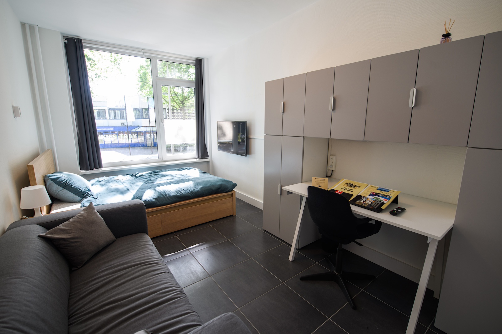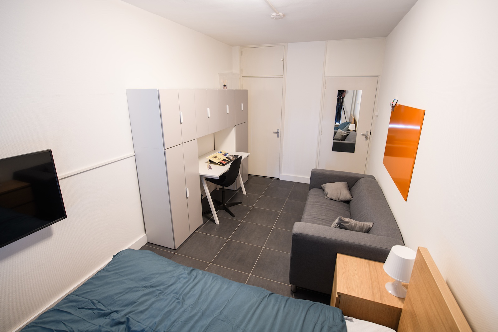 Fully furnished room in a typical Dutch student house (apartment complex), location Statenlaan 61, 5042 RR Tilburg. The student house specifics are: